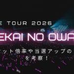 この記事では、各会場のキャパシティやファンの規模から予想されるチケット倍率をはじめ、当選確率を上げるための応募戦略やU-18キャッシュバック制度の活用法、さらに落選後に取るべき行動やリセール情報の可能性までを詳しく解説。